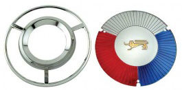 Wheel cover emblem will cover center insert. Red, white and blue crest S0R for wire wheel spoke hub caps with 14 inch rims. This wheel cover emblem is used with part #59FA1130... For 1963 1964 1965 Ford Cars