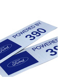 Powered by 390 valve cover decal. This decal can go just about anywhere you can imagine. Made for an aftermarket decal for a valve cover and sold in a pair.